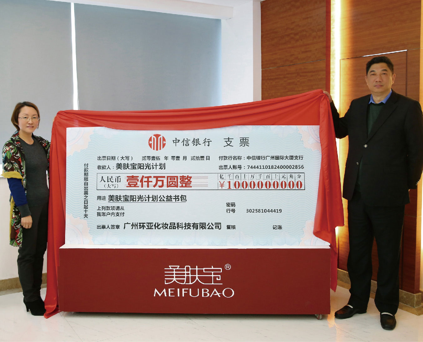 2015年,環亞集團投入一千萬元設立“美膚寶陽光計劃”公益基金,著力關愛留守兒童的健康成長。