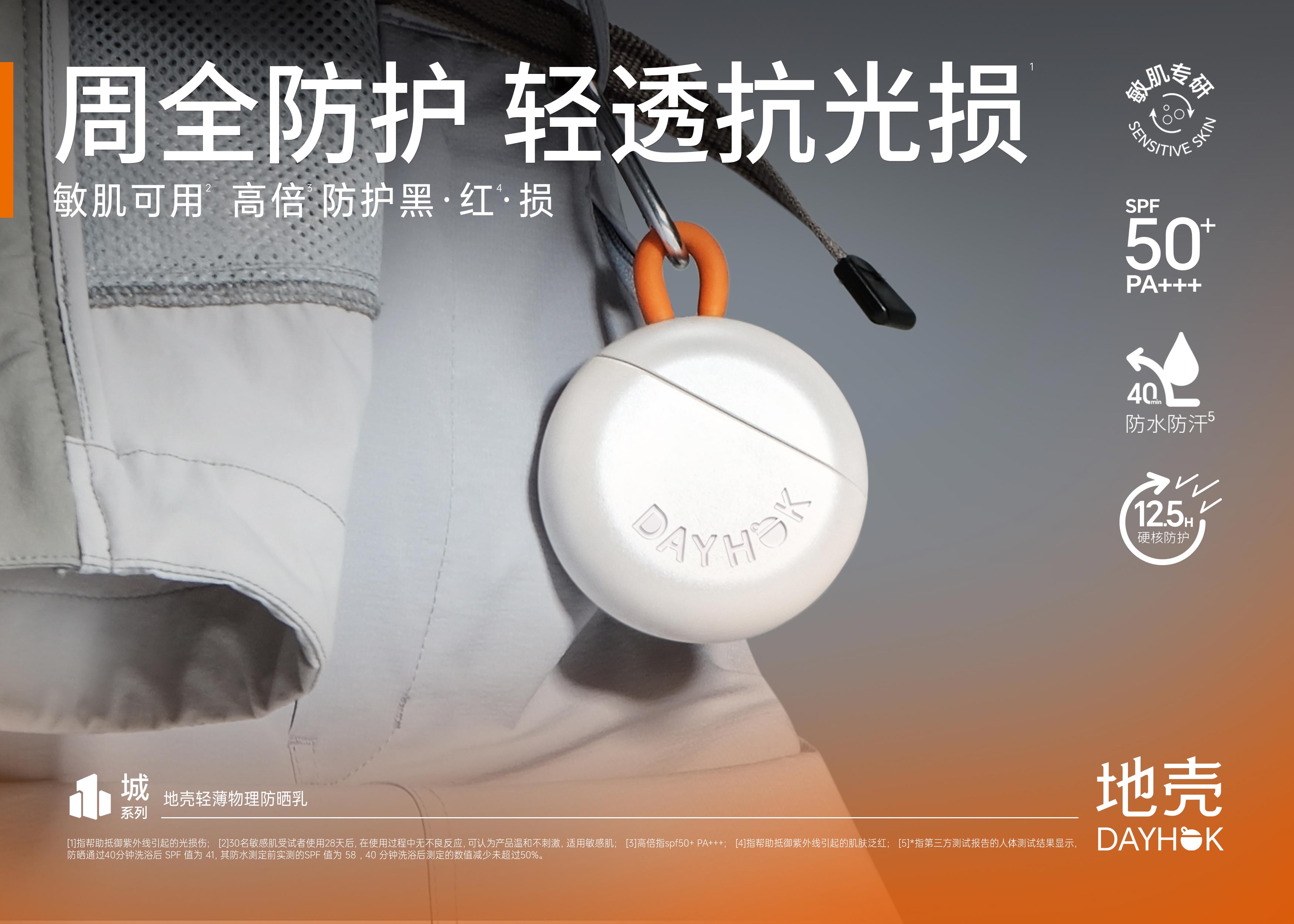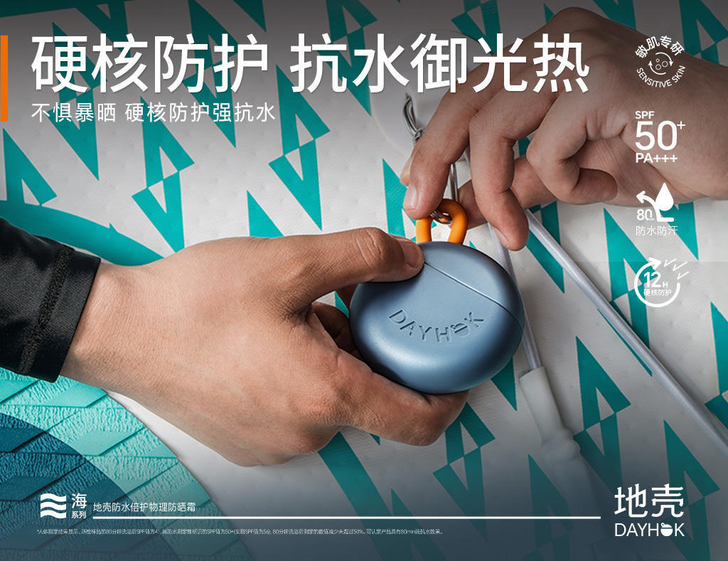 地殼DAYHOK致力于成為中國專業防曬品牌,以滿足消費者對防曬品一支多效的需求。品牌命名源自對自然的敬畏之心,同時承載著環亞集團對于中國專業防曬的自信。
